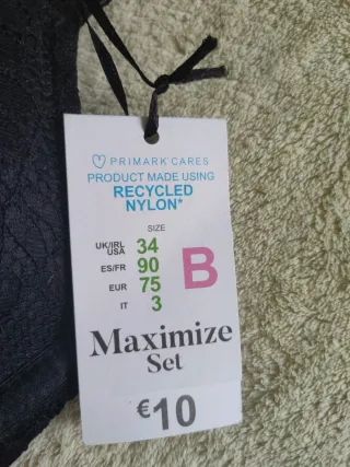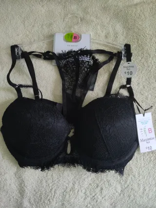 Conjunto de lencería de Primark. - Sujetador con relleno y aros. - Braguita tipo tanga. - Detalle de encaje. - Cierre de corchetes.