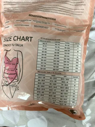 Ambos son de tejido fuerte y elástico. La faja cubre parte de las piernas y es de cintura alta con ballenas. Medidas de la faja: - Cintura: 31 cm, estira hasta 48 - Cadera: 33 cm, estira hasta 56 - Largo: 49 cm Medidas del sujetador: - Contorno bajo pecho: 32 cm, estira hasta 50. - Contorno de pecho: 36 cm, estira hasta 60.