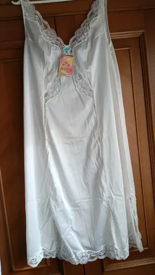 Elegante camisón de la marca Zaira, con un delicado diseño de encaje. Es enagua, para debajo de los vestidos, pero también sirve de camisón - Detalle de encaje en el escote. - Adorno de encaje en el bajo. - Tejido satinado.