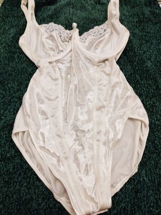 Body interior de lycra y raso totalmente elástico talla del pecho una ochenta y cinco/ noventa. Pone talla 44 pero yo tengo 38