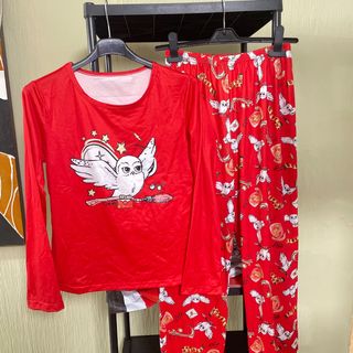Conjunto de pijama para mujer con estampado de Harry Potter. Incluye camiseta de manga larga y pantalón largo. - Diseño con búhos, lunas y estrellas. - Tejido súper suave, calentito y cómodo. - Disponible en talla S o M.