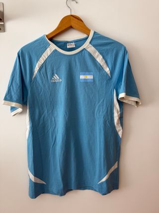 Camiseta de fútbol de Argentina, con el logo de Adidas y la bandera argentina. - Diseño con detalles blancos. - Cuello redondo.