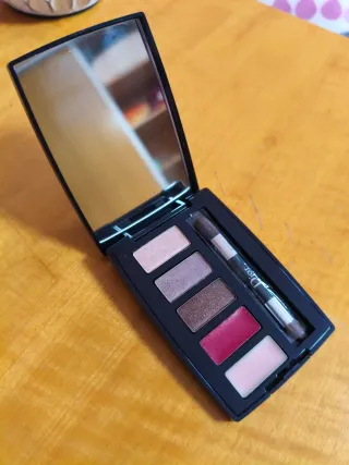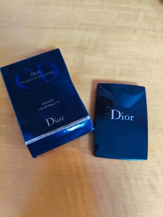 Paleta de sombras de ojos y pintalabios Dior con varios tonos y aplicador. - Incluye tonos dorados, marrones y rosados. - Viene con espejo.