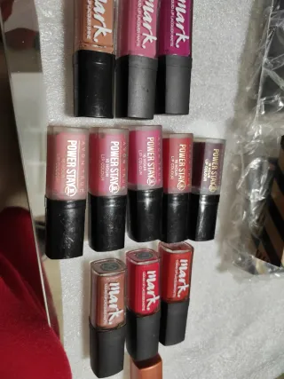 Lote de pintalabios líquidos de Avon, incluye varias tonalidades. - Marca Mark: Liquid Lip Lacquer Shine y Matte. - Marca Power Stay: 16 Hour Lip Colour. - Colores variados: marrones y rosas.oferta 5,50 cada 1.