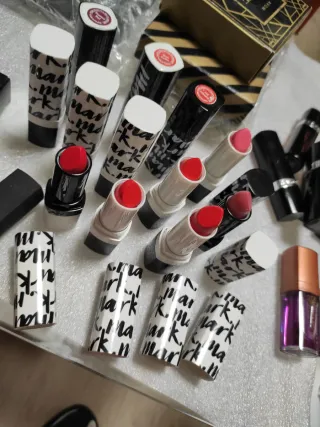 Pintalabios de larga duración. **BARRA DE LABIOS 5€/u - Tono: Beetroot Red 002 (2u disponibles) - Tono: Double Decker 003 (2u disponibles) **LIPGLOSS 5€ -Ladybird 001 (1u disponible) -Peony 003 (2u disponibles) -Mulled wine 005 (1u disponible) -Cherry candy 007 (2u disponibles) **BRILLO LABIAL HIDRATANTE 5€ -Candy Pink 01 (1u disponible) -Red Carpet 02 (2u disponibles) **LAPIZ DE LABIOS 2€ -Marron (2u disponibles) -Granate (2u disponibles)