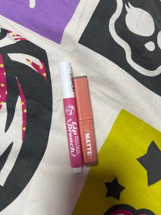 Dos pintalabios de la marca W7, ambos completamente sin usar. - Un pintalabios en tono rosa. - Un pintalabios en tono naranja.