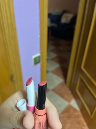 Se venden dos pintalabios de la marca Maybelline, uno en tono marrón y otro en tono rosa. - Marca: Maybelline - Colores: marrón y rosa