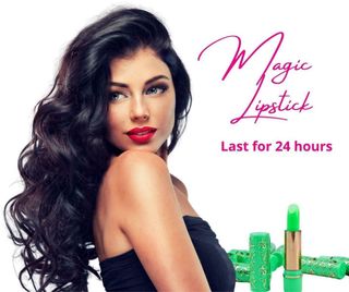 Pintalabios mágico de inspiración marroquí. La barra es de color verde pero deja los labios rojos o rosa en funcion del Ph. Dura 24h