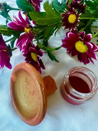Tajín marroquí para pintar los labios. - Color rojo intenso. - Formato redondo con agujero para colgar.