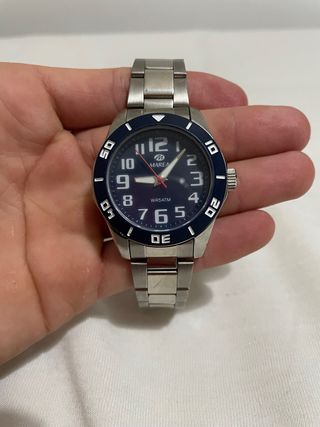 Reloj de pulsera de la marca Marea en color azul y plateado. - Diseño moderno y elegante. - Correa de metal. - Esfera azul con detalles plateados.