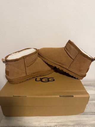 Botas UGG Classic Ultra Mini en color marrón. - Diseño de caña baja. - Interior forrado de lana de oveja. - Suela exterior de goma. - Costuras decorativas.