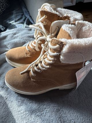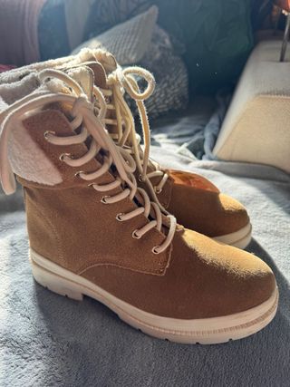 Botas de piel con un suave forro interior de borreguito, perfectas para mantener los pies calientes. - Material exterior de piel. - Forro interior de borreguito. - Cierre con cordones.