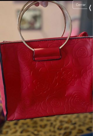 Bolsa Roja Elegante con Asas Metálicas Hermosa bolsa roja con diseño grabado de flores, ideal para darle un toque elegante y femenino a cualquier outfit. Su estilo es moderno y llamativo, perfecta para salidas, eventos o uso diario. # Características: Color: Rojo intenso • Diseño con relieve floral • Material resistente • Asas metálicas redondas, firmes y cómodas para llevar en la mano • Tamaño ideal para llevar lo esencial • Acabados elegantes Envío rápido • Entrega segura • Empaque cuidadoso Ideal para: • Salidas especiales • Regalo • Uso diario con estilo