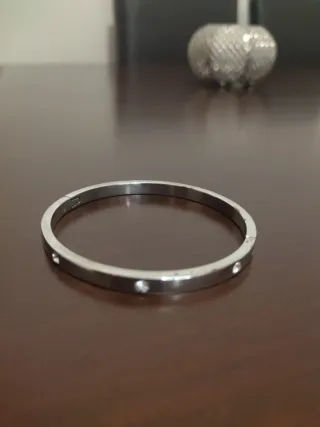 Elegante pulsera con un diseño moderno y detalles brillantes. - Acabado plateado. - Incrustaciones de circonitas.