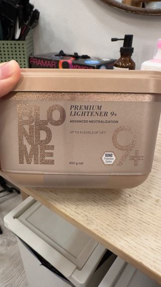Decoloración en polvo BlondMe Premium Lightener 9+ de Schwarzkopf Professional. - Formato de 450 g net. - Neutralización avanzada. - Hasta 9 niveles de aclarado. - Incluye sistema de protección de enlaces (Bond Protection System). 3 botes pack completo