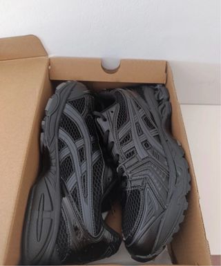 Zapatillas deportivas Asics Gel Kayano-14 en color negro. - Diseño moderno y deportivo. - Malla transpirable en la parte superior. - Detalle de franjas laterales icónicas.