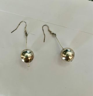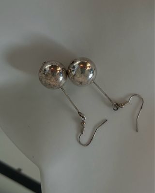 Pendientes largos de estilo vintage con un diseño de bola colgante. - Cierre de anzuelo. - Diseño colgante con bola. - Acabado plateado.