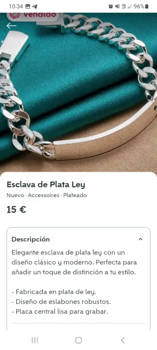 - Es una esclava que es unisex tanto hombre como mujer la pueden lucir. - Peso 8.57 Gramos - Acabado pulido brillante. - La esclava cuenta con una placa que si gustan, le pueden mandar a colocar un nombre, unas iniciales o una fecha en concreto. Excelente opción para un regalo