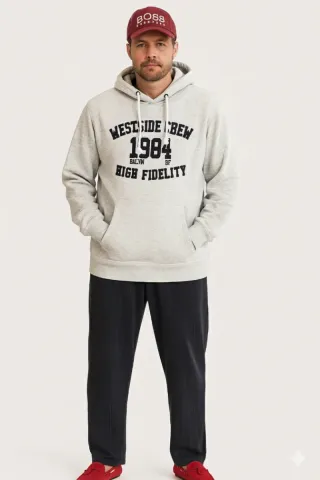 Sudadera con capucha de color gris, 95% algodón, 5% viscosa, de sisa a sisa: 59 cm, largo: 71 cm. Talla L