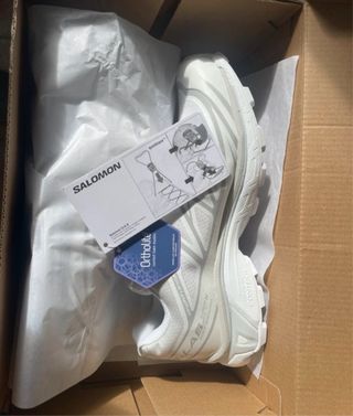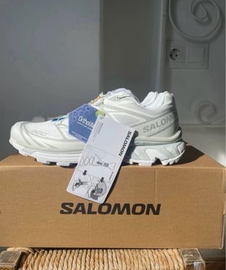 Zapatillas de trail running Salomon XT6. - Diseño en gris y blanco. - Tecnología Gore-Tex para impermeabilidad. - Sistema de lazada rápida Quicklace. - Suela Ortholite para mayor comodidad.