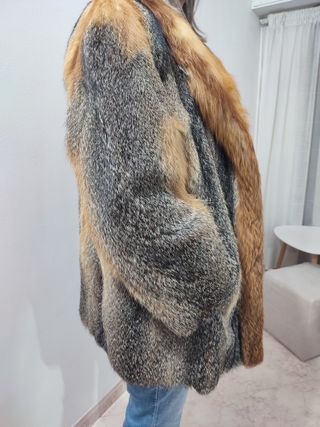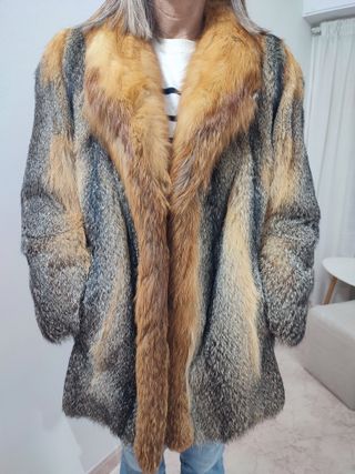 Abrigo de piel de zorro con un diseño muy elegante. Tonalides marrones, gris le dan un toque de distinción. - De la peletería Andreu en Palamós - Colores marrón, negro, gris y tonos blancos - Talla única