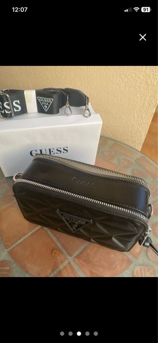 Elegante bolso de charol para mujer. - Diseño moderno con múltiples cremalleras. - Asa corta y correa larga ajustable. - Acabado brillante.
