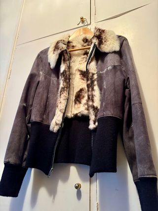 Chaqueta de doble cara, de piel natural con forro interior de pelo. - Cuello de pelo. - Cremallera frontal. - Puños y cintura de punto.