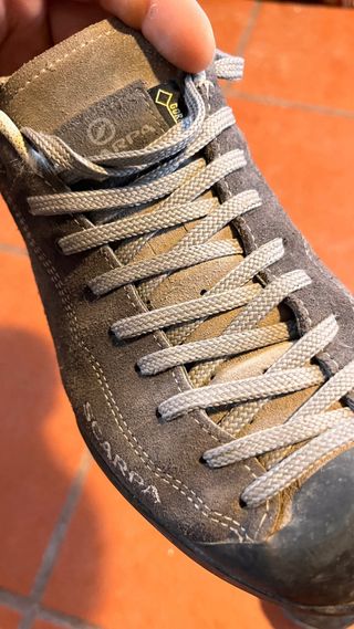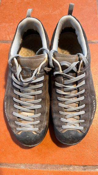 Zapatillas Scarpa Mojito con Gore-Tex talla 39 Características: - Ante resistente al agua con puntera de goma - Forro impermeable GORE-TEX Extended Comfort - Cierre de cordones extendidos hasta la punta del pie, diseño inspirado en el mundo de la escalada - Suela Spyder Trek con entresuela de EVA de densidad media para la estabilidad, y suela con goma Vibram con diseño exclusivo de Scarpa compuesto de goma TC4+ para mayor durabilidad - Peso aproximado: 390 g