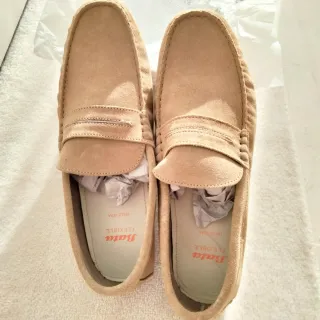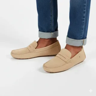 Mocasines de ante en color beige. Mocasines de Bata. Material natural de ante. Talla: 44 Flexible: confort y estabilidad en cada paso Airsystem: Transpirabilidad Antistatic: tejido antiestático - Diseño clásico de mocasín. - Costuras visibles en el empeine. - Detalle de tira en el empeine.