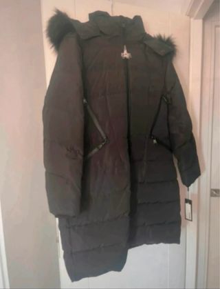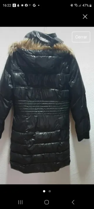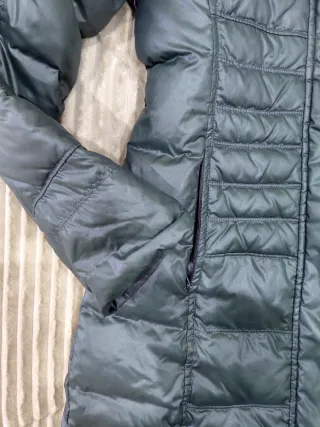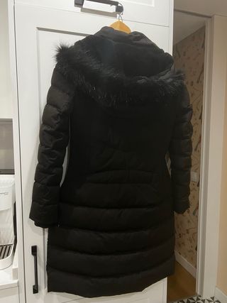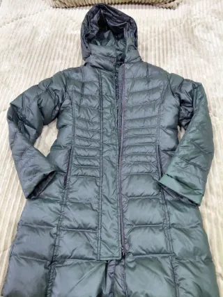 Abrigo largo de plumas de ganso. Super calientito e impermeable Dice talla M pero es muy amplio, la persona que lo lleva es L-xL, amplio para llevar ropa debajo. Apto para lluvia y nieve. - Cierre con dos enganches metálicos y cierre