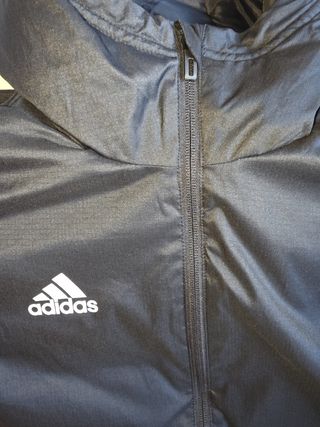 Abrigo largo acolchado de la marca Adidas. Ideal para mantenerte abrigado. - Diseño acolchado. - Cierre frontal con cremallera. - Mangas largas con las tres franjas características de la marca.