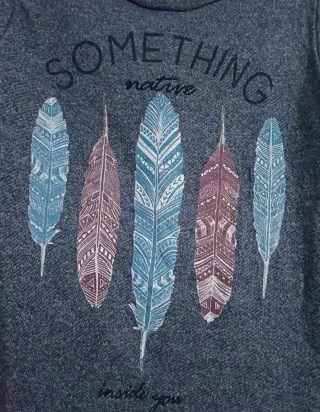 Sudadera cómoda con un diseño de plumas en la parte delantera. - Estampado Something native inside you. - Diseño de cinco plumas en tonos azules y burdeos. - Cuello redondo y manga larga.