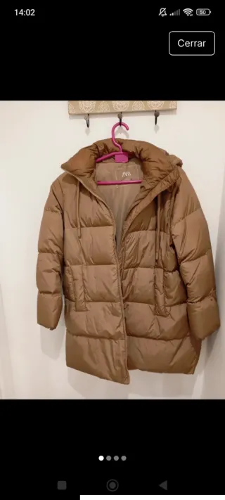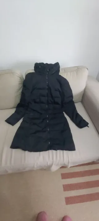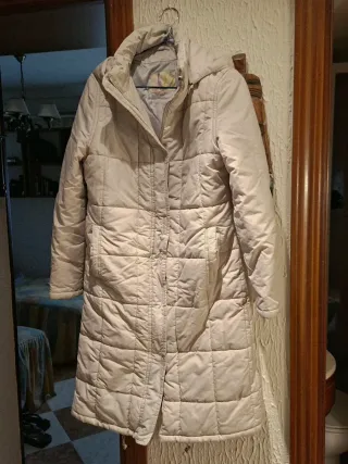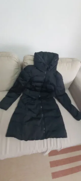 Abrigo acolchado largo de Zara. - Diseño con capucha. - Cierre de cremallera. - Bolsillos laterales. Es talla Xs pero da hasta una talla M, L es muy amplio.