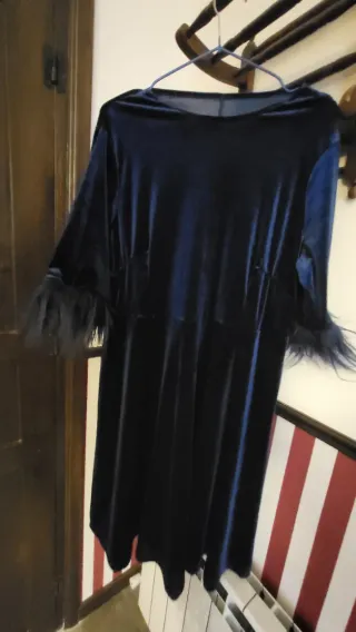 Vestido azul encaje con plumas talla 42