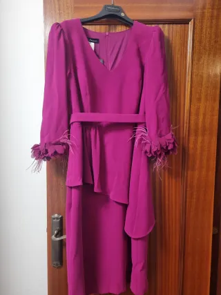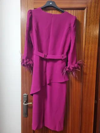 Vestido fiesta magenta con plumas