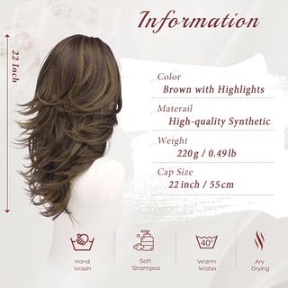 Peluca larga y ondulada con un bonito degradado de color castaño y reflejos. El diseño imita un cuero cabelludo realista y natural. Presenta una textura suave, un color natural, mientras que su diseño multicapa mantiene el volumen y el movimiento. Requiere mantenimiento mínimo, solo hay que cepillarla y sacudirla rápidamente para peinarla sin esfuerzo. CARACTERÍSTICAS: - Gorro con diseño realista y simulado. - Flequillo natural que enmarca el rostro y es rediseñable. - Capas con efecto plumado para un estilo moderno y con movimiento. TOTALMENTE NUEVA, IDEAL PARA REGALO!