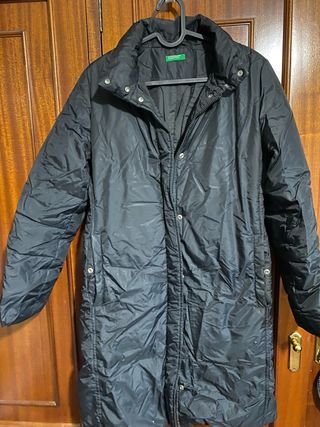 Abrigo Benetton Negro Plumas Largo