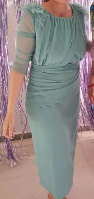 Vestido de fiesta agua marina con plumas