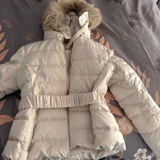 Precioso Abrigo pluma acolchado de ZARA en color blanco roto, con un diseño moderno y elegante. Muy calentito y súper práctico - Capucha (se puede quitar) con pelo (se puede quitar de la capucha) - Cinturón elástico con hebilla plateada. - Cierre de cremallera. - Bolsillos laterales con cremallera. - Ajustes en puño Precio no negociable. 45 de ancho/ 57 de largo Puedo hacer envíos