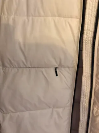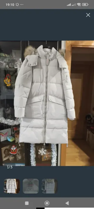 Si te quedas el gris de mi perfil 25 los dos Si te quedas los 5 jersey de mi perfil todo 35 con los dos abrigos También vale para una talla más pequeña a la m Abrigo largo de color blanco, ideal para el frío. - Diseño acolchado. - Capucha con pelo. - Cierre de cremallera. - Bolsillos frontales.