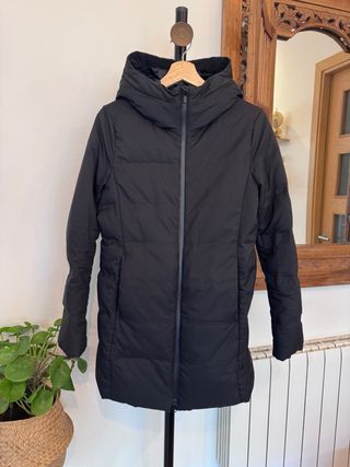 Abrigo largo de Uniqlo con relleno de plumas de gansonsturales ahora son reciclables. No rebajo costó 190 euros. Ideal para mantenerte abrigado. - Cierre de cremallera. - Capucha integrada. - Bolsillos laterales con cremallera.