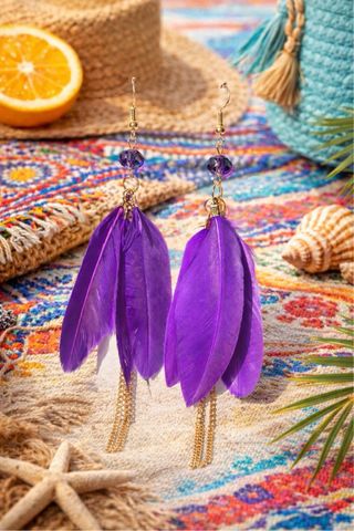 Pendientes estilo boho étnico en tono morado intenso con plumas largas, cuentas facetadas y detalles dorados. Súper ligeros y con movimiento ✨ Ideales para verano, festivales, looks ibicencos o para dar un toque atrevido y femenino a cualquier outfit. 💜 Color vibrante que favorece ✨ Detalles dorados elegantes 🌿 Estilo bohemio con personalidad Si te gustan los accesorios que no pasan desapercibidos… estos son para ti 😉 Medida: Pluma 9cm / Cadena 11,5cm #collar #flores #artesania #hechoamano #joya #color #colgante #pendiente #pendientes