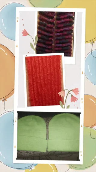 Muy originales. En perfecto estado. Sin ningún defecto. Nuevos a estrenar. Medidas en centímetros. -Bufanda extra grande. Mide 19 de ancho y 180 de largo. Tacto suave. Tipo bolas de algodón unidas por cadeneta. -Chal ceremonia. Mide 40 de ancho y 2,25 de largo. Echarpe color coral. Tiras verticales de tejido tipo plumas. -Lote de 2 gorros iguales. Talla única. Color pistacho.