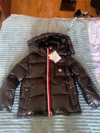 Chaqueta acolchada de la marca Moncler. - Diseño con capucha. - Cierre de cremallera frontal. - Bolsillos laterales con cremallera. - Parche distintivo en la manga.