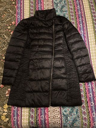 Anorak acolchado de la marca Mango. - Diseño acolchado horizontal. - Cuello alto. - Cierre de cremallera y botones. - Bolsillos laterales con cremallera. Medidas: Largo: 65 cm Mangas: 66 cm Pecho: 39 cm Caderas: 53cm