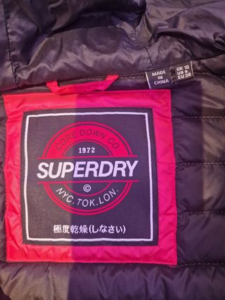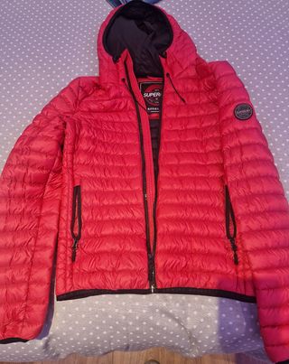 En perfecto estado! Casi nuevo! Apenas usado un par de veces. Chaquetón acolchado tipo plumas de Superdry. Muy ligero y abrigado. Talla S. Color coral oscuro con interior y filos en negro. Logo de la marca en goma, en manga izquierda.