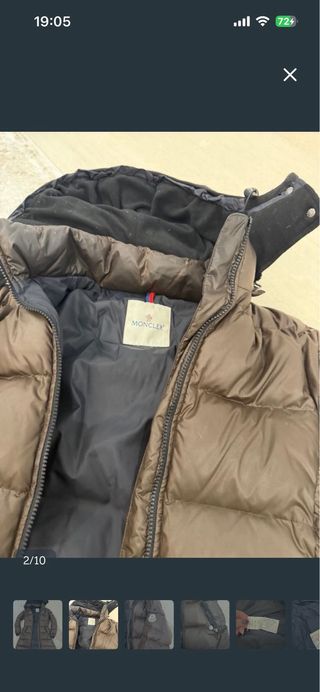 Cazadora de plumas Moncler en color verde oliva. Presenta el icónico logo de la marca en la manga. - Diseño acolchado. - Cierre de cremallera Esa prenda está valorada en más de 500 euros. Aprovecha está ganga me corre prisa en vender