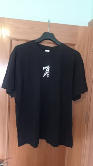 Camiseta negra con diseño gráfico. - Estampado blanco con la frase NO ESTAMOS LOCOS. - Diseño con plumas y un rostro estilizado.