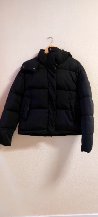 Abrigo acolchado de la marca Kiabi en color negro y talla S. Es una prenda cómoda y cálida. - Diseño acolchado. - Cierre de cremallera. - Bolsillos laterales con cremallera.