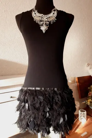 Vestido negro con plumas